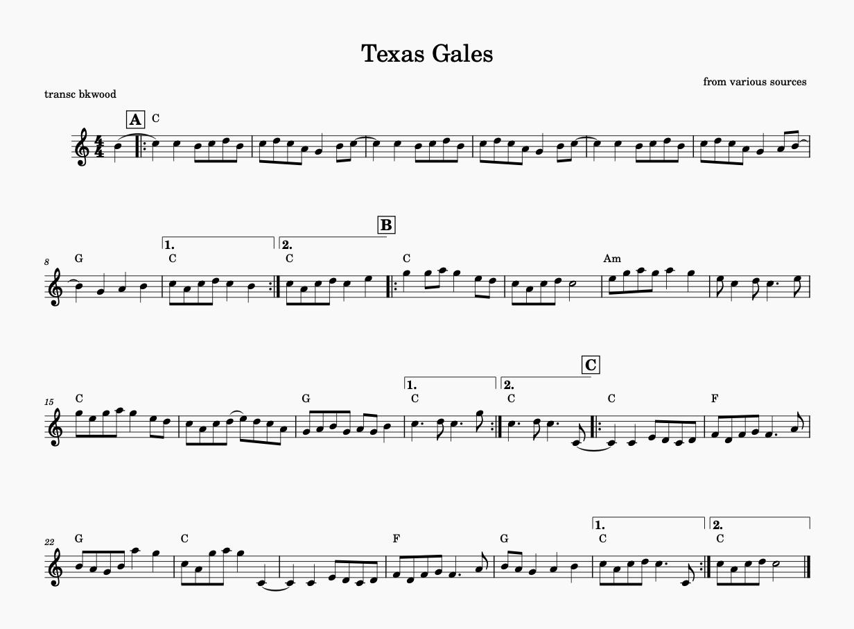 Transcriptions by Brian K. Wood & Alan Kendall